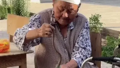 Әлеуметтік желілерде тараған видеода 85 жастағы кейуана ауласында жыланды жалаң қолмен құйрығынан ұстап, пластик бөтелкеге салып жатқаны бейнеленген, - деп хабарлайды "Opennews.kz" ақпарат агенттігі.