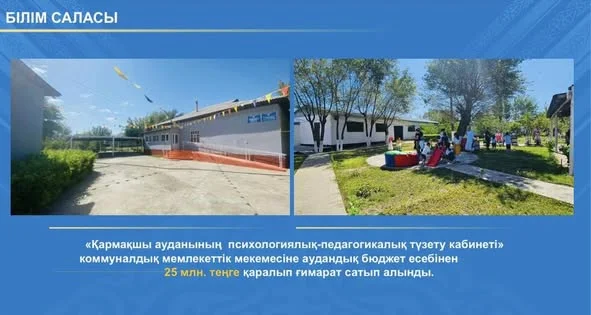 Аудан әкімінің айтуынша, ерекше білім беруді қажет ететін балалардың даму мүмкіндіктерін кеңейту де басты назарда. Осы мақсатта аудандық бюджет есебінен 25 миллион теңгеге арнайы ғимарат сатып алынып, Қармақшы ауданының психологиялық-педагогикалық түзету кабинеті коммуналдық мекемесіне берілді. Бұл бастама – инклюзивті білім беруді дамытуға бағытталған маңызды қадамдардың бірі.