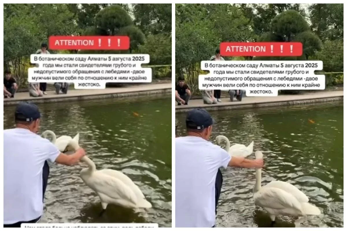 Алматыдағы ботаникалық бақта бір топ келушінің аққуларға қатыгездік көрсеткен сәті видеоға түсіп қалды. Кадрда ер адамдардың құстарды мойнынан ұстап, “тұншықтырып” өздеріне қарай тартып жатқаны анық көрінеді, - деп хабарлайды "Opennews.kz" ақпарат агенттігі.